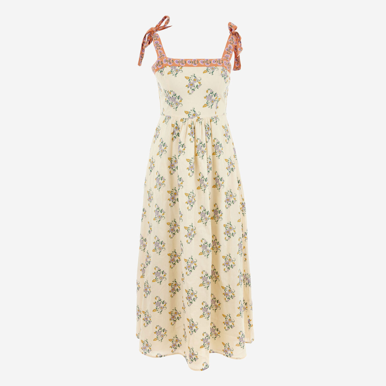 The buttery yellow tone of this delicate floral midi dress is simply beautiful. Perfect for a city break!