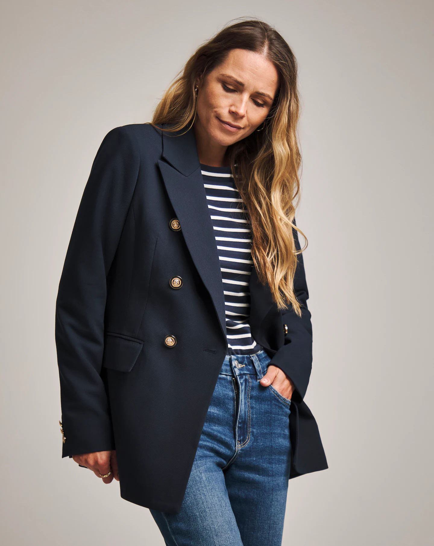 The perfect addition for your wardrobe, this Navy Military Twill Blazer will take any outfit from day to night. Completely timeless and oh-so-easy to style, the navy hue is perfect for teaming with indigo jeans or beige slacks for the most sleek and slick look you can imagine. Elevated with gold and black detailed metal buttons, this double breasted blazer is a must-have this season.