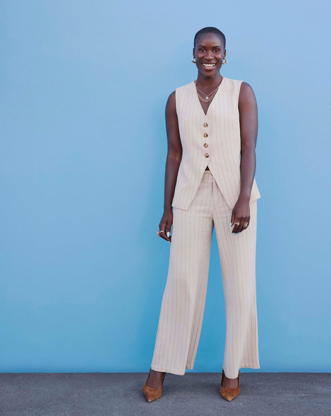 It's waistcoat season! Pair this classically elegant style with the matching Wide Leg Trousers for a stand out look on holiday or at a big event, or with denim to give your everyday look a bright boost.