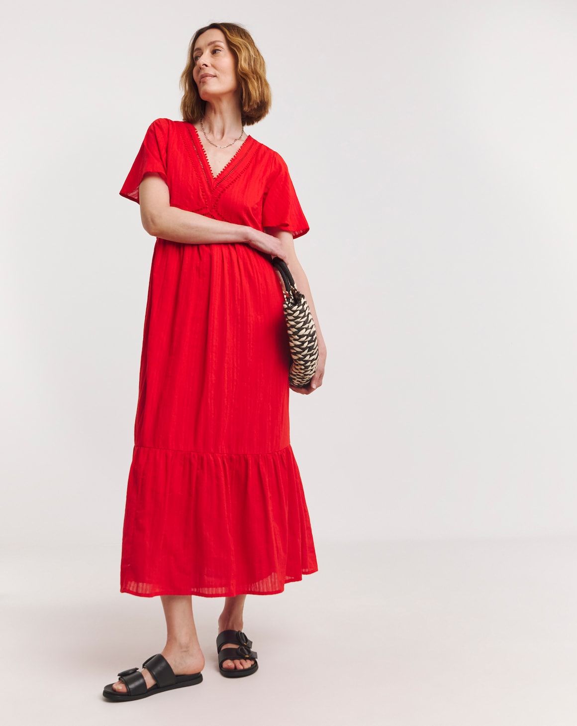 If you prefer to make an impact with colour alone, this vibrant tomato red dress is an ideal all-rounder.