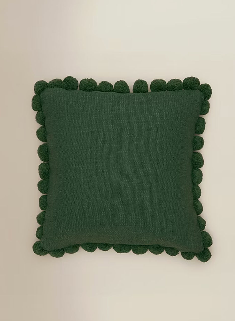 These brilliant pom pom cushions are an absolute steal! The trim adds a hint of handmade countryside cottage charm while the colour is perfect for the season (they come in red, and other colours too!).