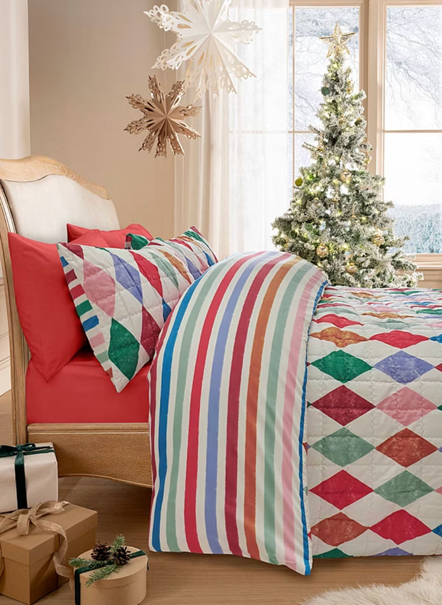 A sweet, nostalgic print that instantly transforms your bedroom into a cosy retreat - the addition of festive stripes add a grown-up edge.